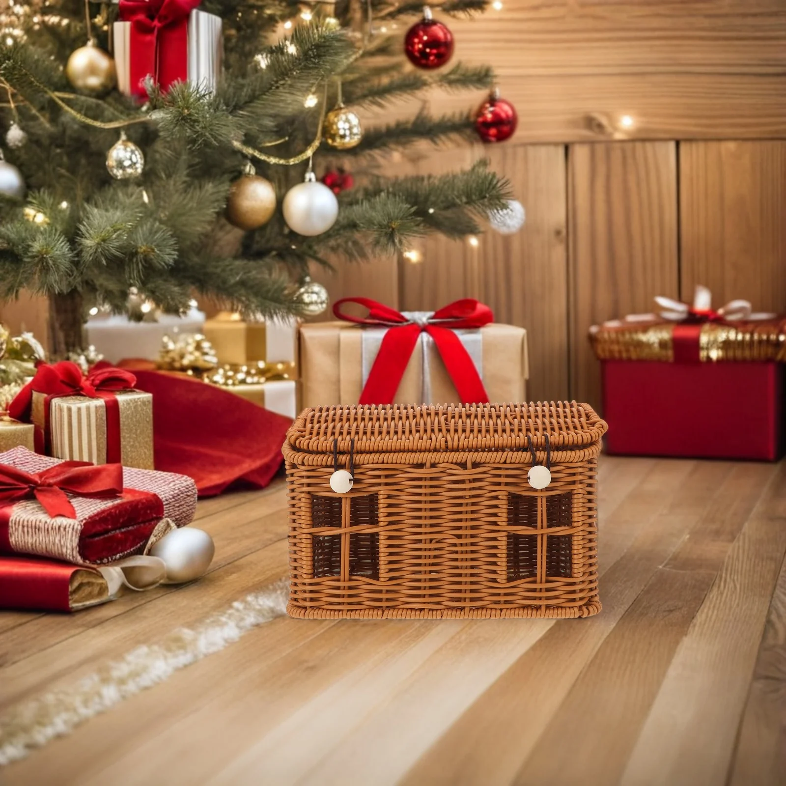 This house-shaped basket combines festive charm with practicality, featuring a decorative design that enhances holiday table desk decor. Crafted with imitation rattan, it offers a faux woven wicker look, making it a christmas present basket or xmas snack container. Ideal for storing candies, cookies, or nuts, it adds joy to family gatherings and sparks 's imagination. house shaped basket