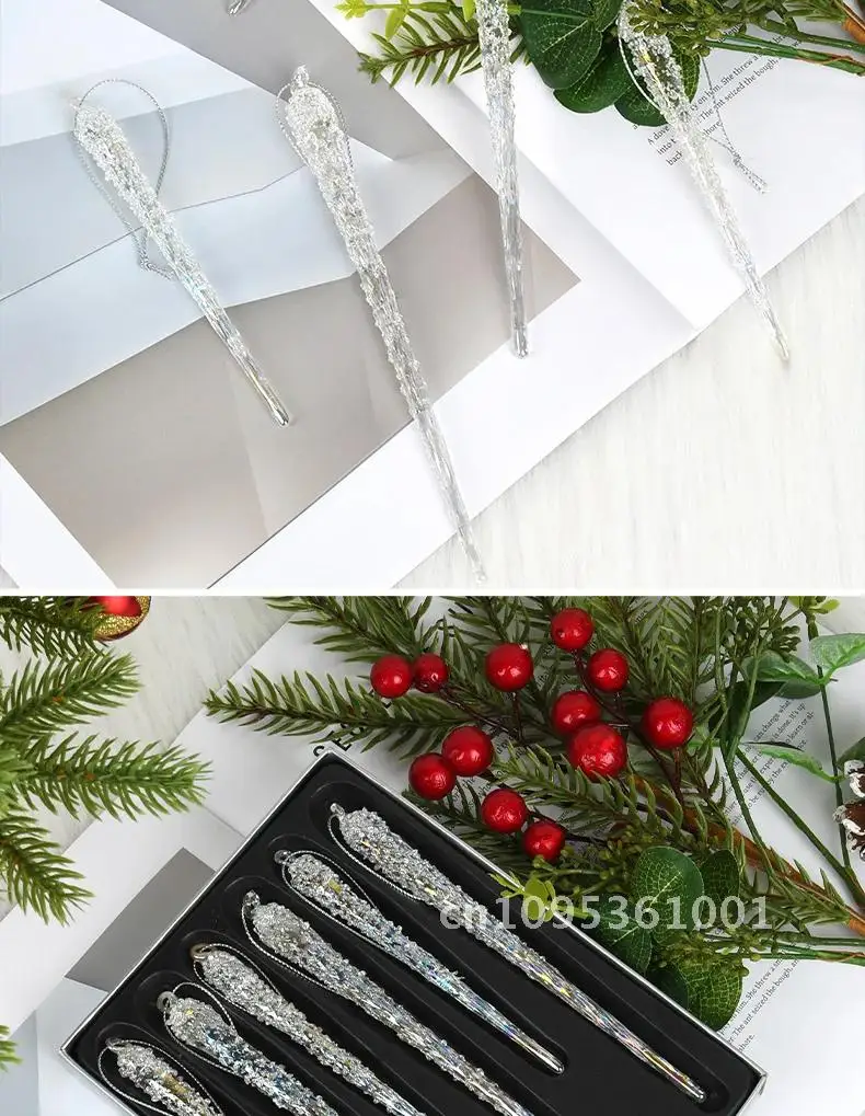 Christmas ornaments, Set clear glass, ice strip decorations